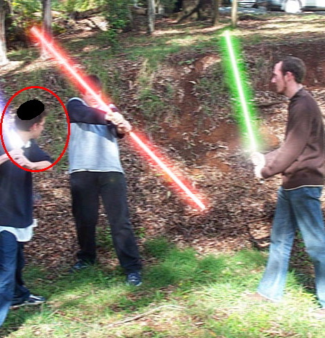 Dovid (circled) with a friend and his Jedi Master at start of training